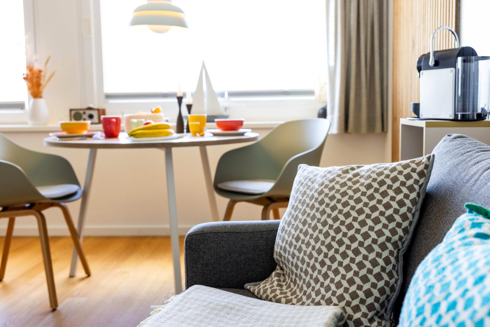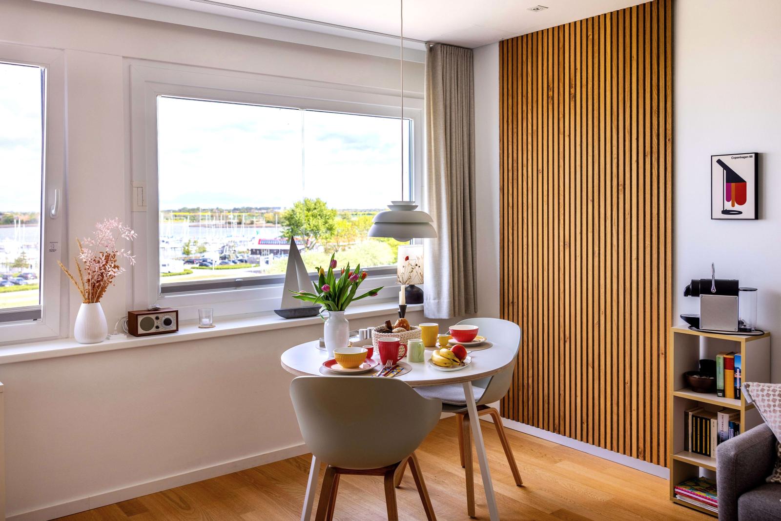 Diese Wohnung ist sehr modern und mit viel Liebe zum Detail eingerichtet worden. Sie ist sehr gepflegt und sehr sauber. Wir haben uns von der ersten Minute an wohl gefühlt. Es ist alles vorhanden, was man so braucht. Über den netten Willkommensgruß im Kühlschrank und den netten Kontakt zum Vermieter haben wir uns sehr gefreut. Ganz toll ist der mega Ausblick über den Yachthafen. Da genießt man das Frühstück und den ersten Kaffee ganz besonders. Wir(mit Hund) kommen gerne wieder. Es war ein wunderschöner Kurzurlaub.