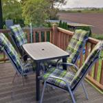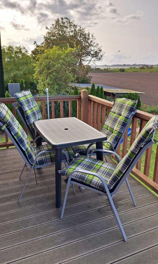 Ein Balkon mit Gartenmöbeln und Sonnenschirm rundet das Angebot ab und bietet einen schönen Platz zum Entspannen im Freien.